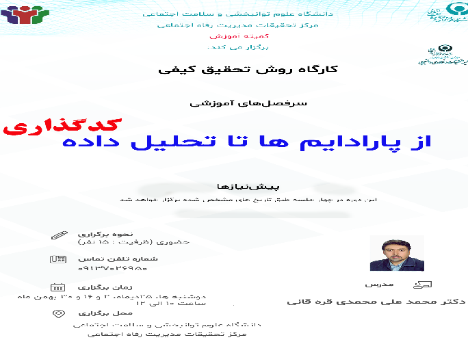برگزاری کارگاه «روش تحقیق کیفی جلسه اول، از پارادایم ها تا تحلیل داده»