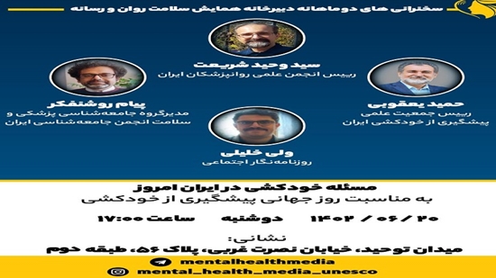به مناسبت روز جهانی پیشگیری از خودکشی ، دبیرخانه همایش «سلامت روان و رسانه» برگزار نمود:"مساله خودکشی در ایران امروز "